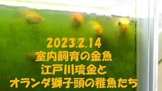 金魚 【2023年2月14日 室内飼育の金魚の成長ぶり 江戸川琉金、オランダ獅子頭 見た目が悪いので、心してご覧ください】