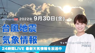 ニュース 【LIVE】夜の最新気象ニュース・地震情報 2022年9月30日→10月1日(土) /全国的に晴れの10月スタート〈ウェザーニュースLiVE〉